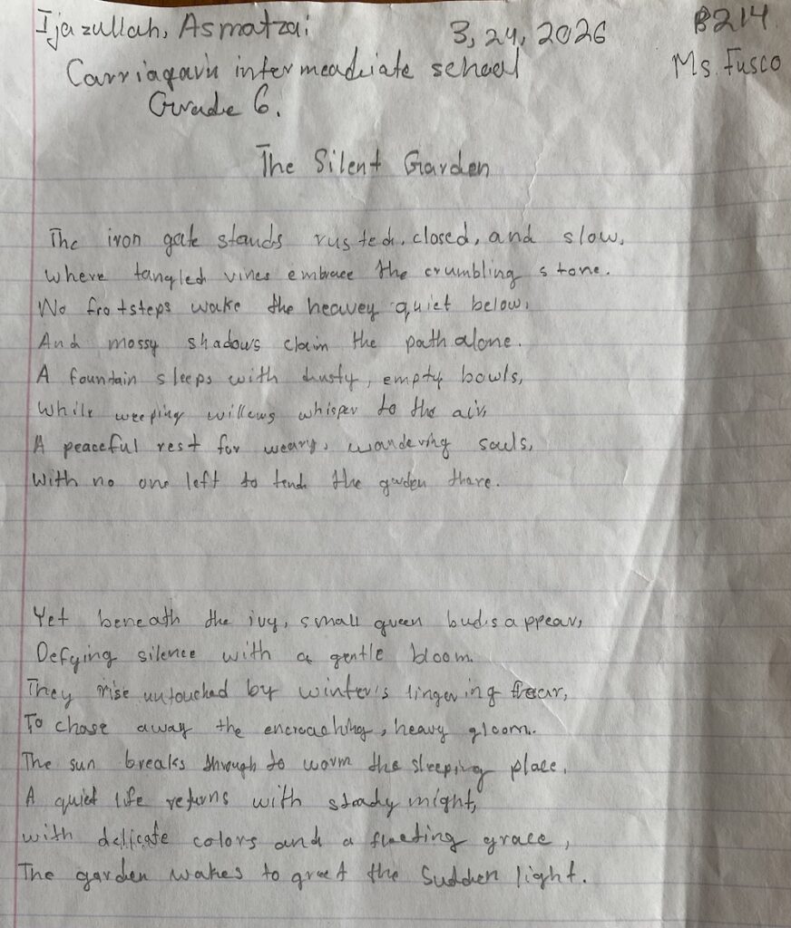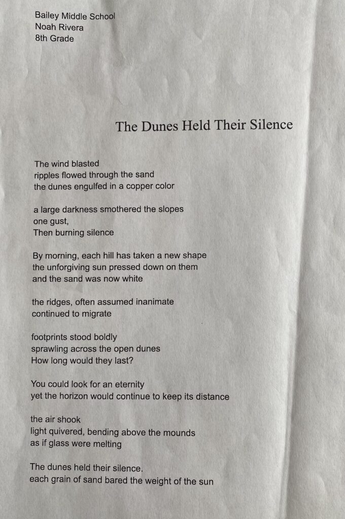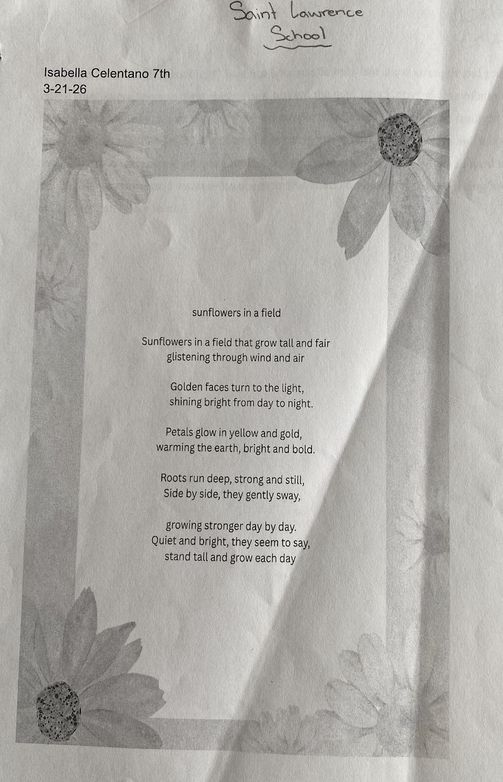In total, dozens of students were recognized for their work, including top honors awarded across grades three through ten, as well as several honorable mentions. The breadth of participation reflected the growing impact of the Poetry Contest, which is held annually in conjunction with National Poetry Month and Earth Day.